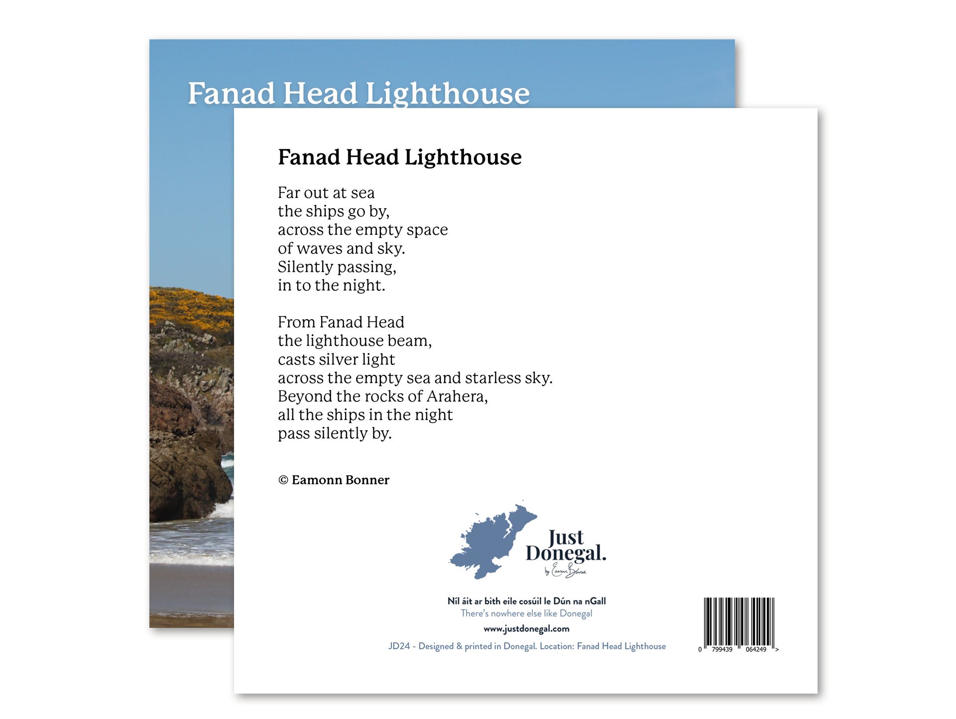 Each card in this collection captures the essence of this Donegal peninsula, from the iconic Fanad Head Lighthouse standing proud against the Atlantic, to the golden sands of Portsalon and the peaceful shores of Rathmullan. Explore the charm of Ramelton’s historic streets and beauty of Kerrykeel’s tranquil landscapes, all brought to life with vivid imagery and poetry by Eamonn Bonner.